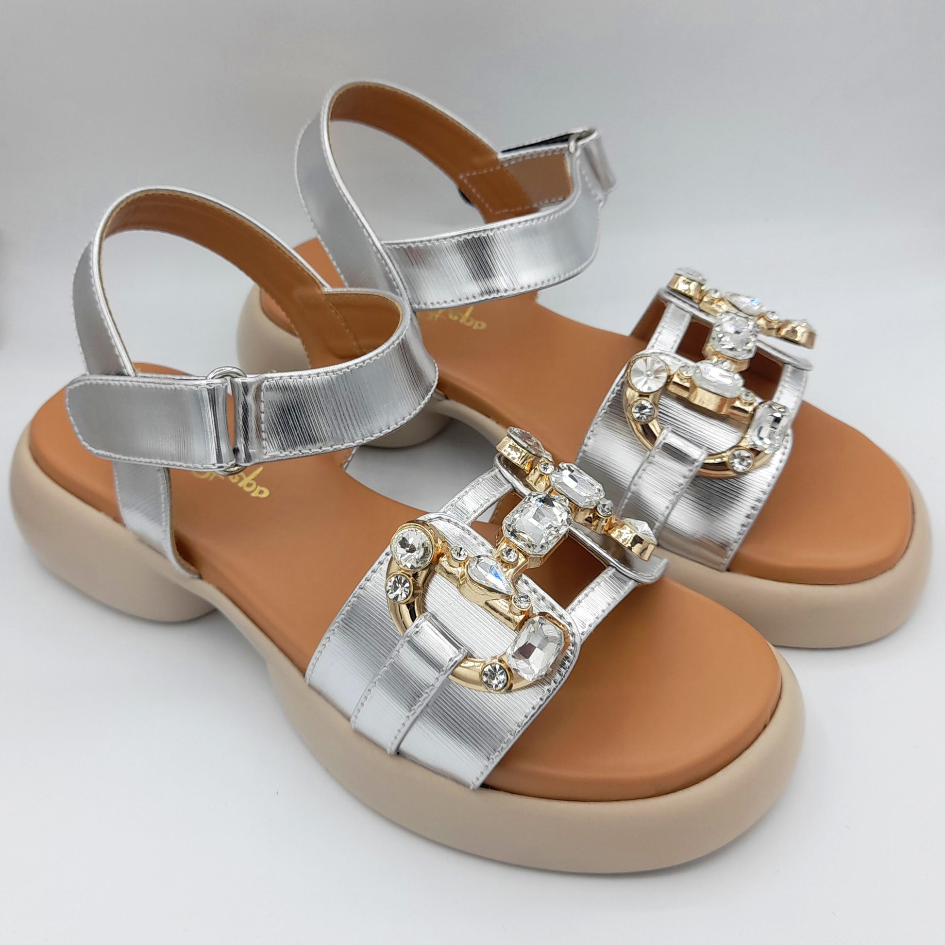Add a touch of glamour to your everyday comfort with our Comfort Sandals! Featuring chic embellished stone work design and easy Velcro strap closure, these sandals offer a soft sole for maximum relaxation. Say goodbye to discomfort and hello to style!