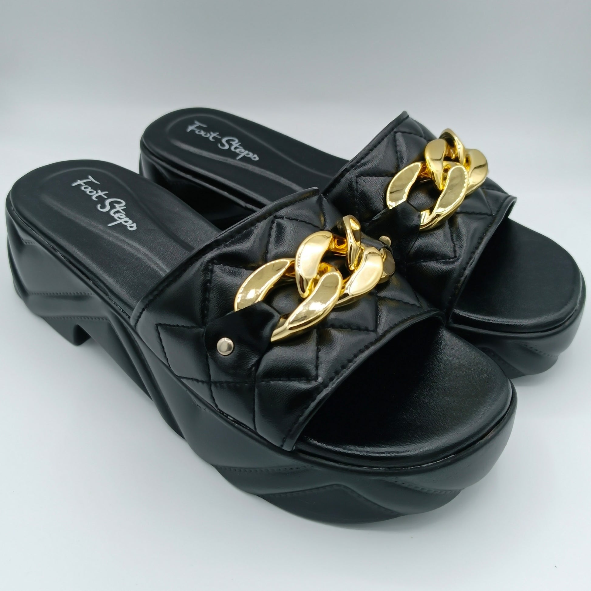 Experience the perfect blend of comfort and style with these wedge slippers featuring a soft knitted design for breathability and elegant gold chain touch, making them ideal for both casual outings and relaxed indoor wear. Designed to provide gentle elevation, these slippers support your feet throughout the day without compromising on comfort.