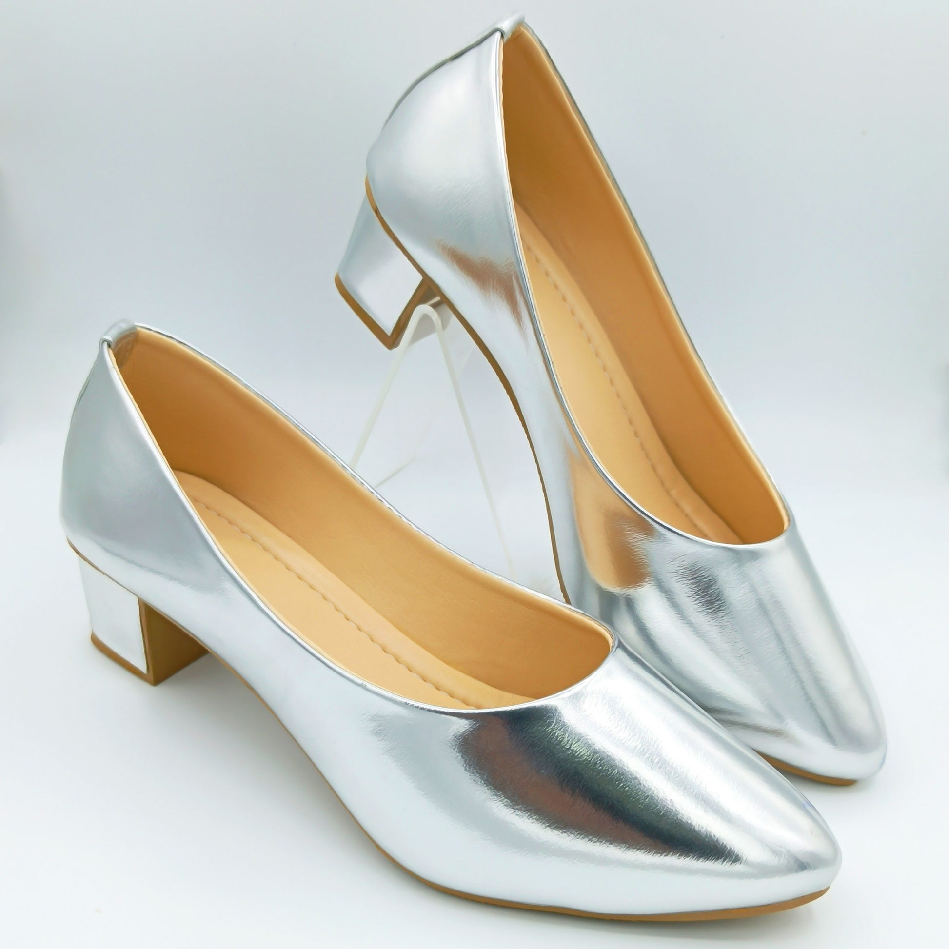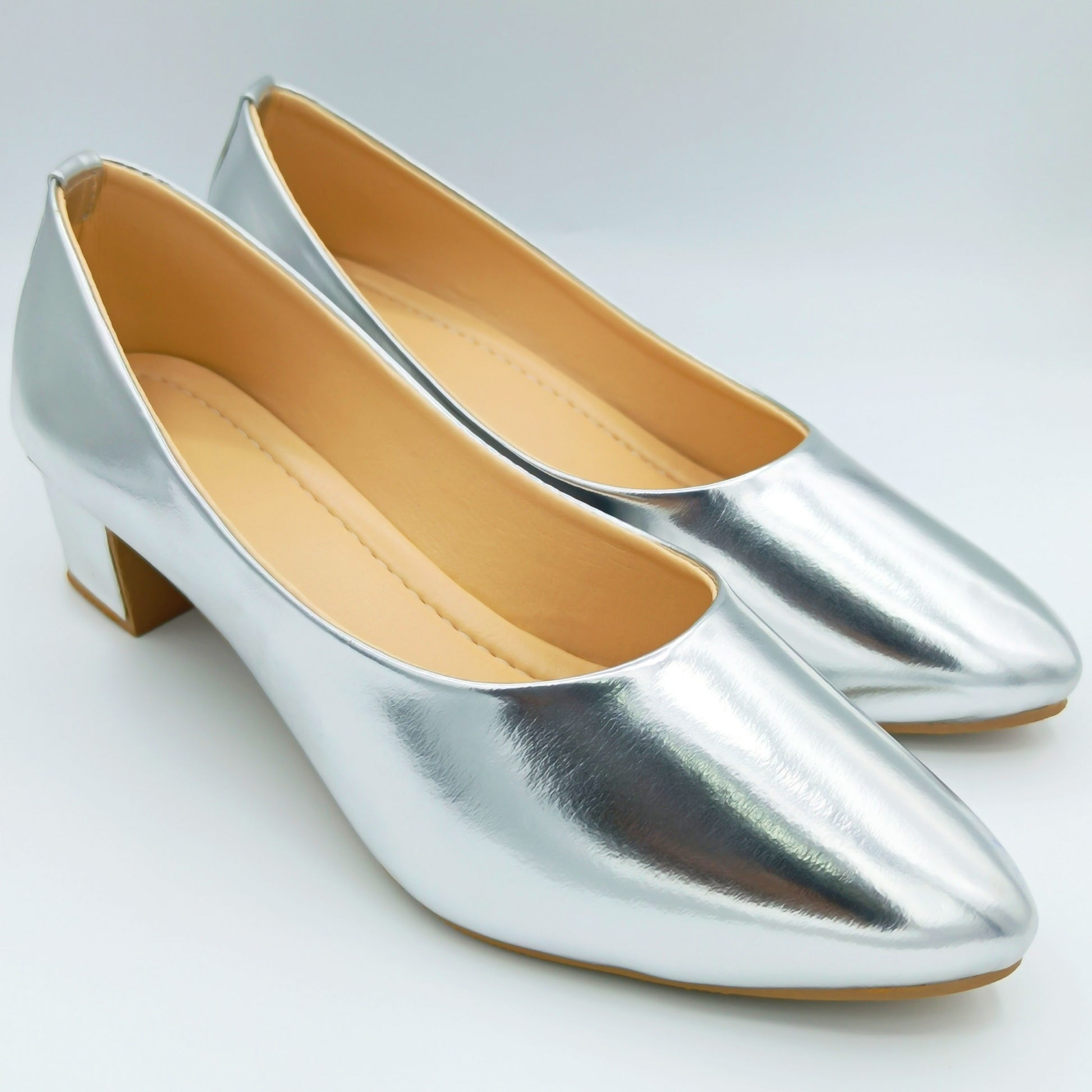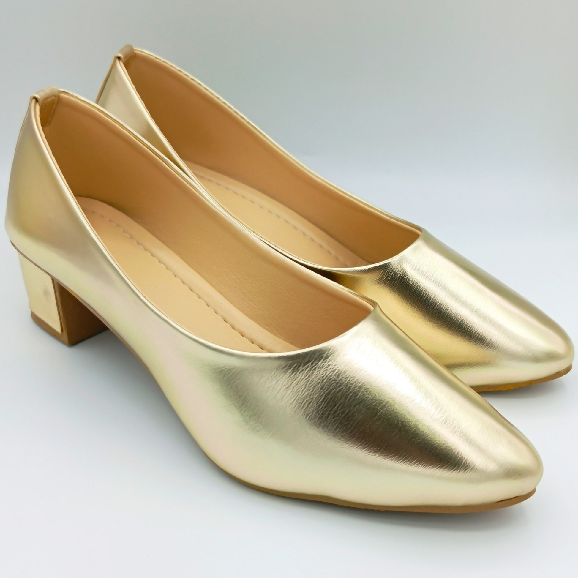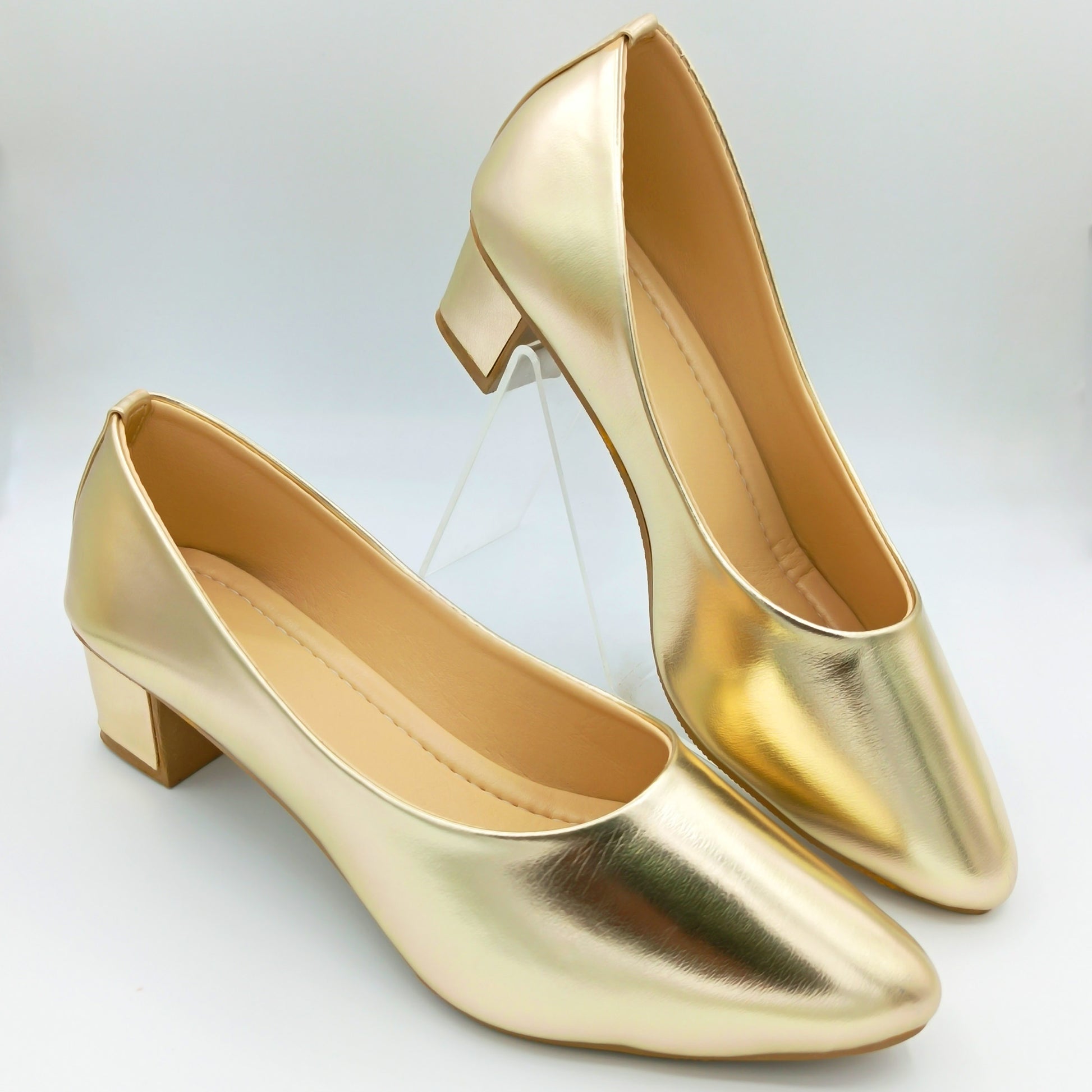 Step out in style with these elegant court shoes featuring a comfortable block heel. Available in shimmering golden and silver shades, they add a touch of sophistication to any outfit while providing stability for all-day wear. Perfect for both formal occasions and chic everyday looks.